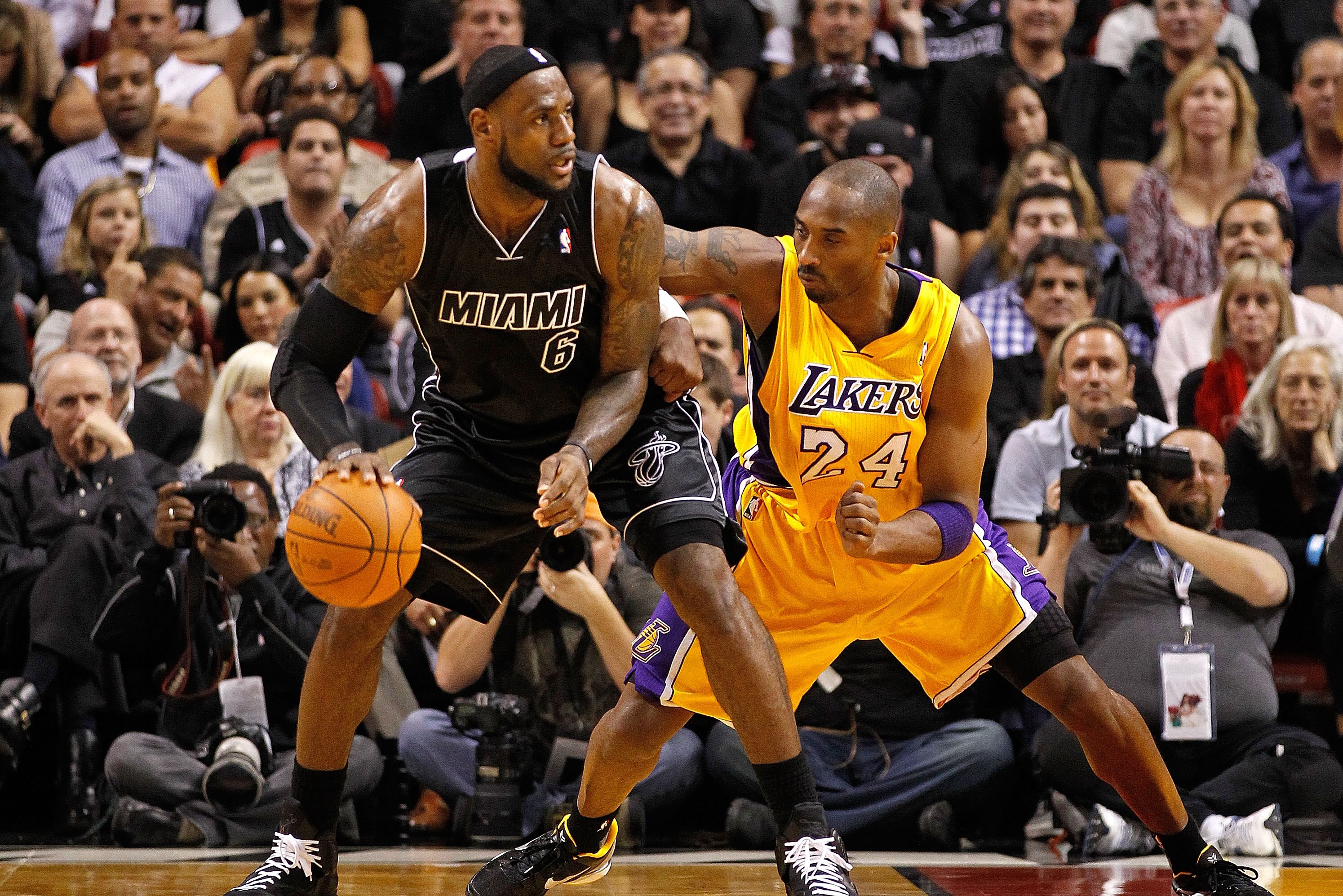 Los Angeles Lakers Shooting Guard Kobe Bryant 24 And Miami Heat Small Forward Lebron James 6