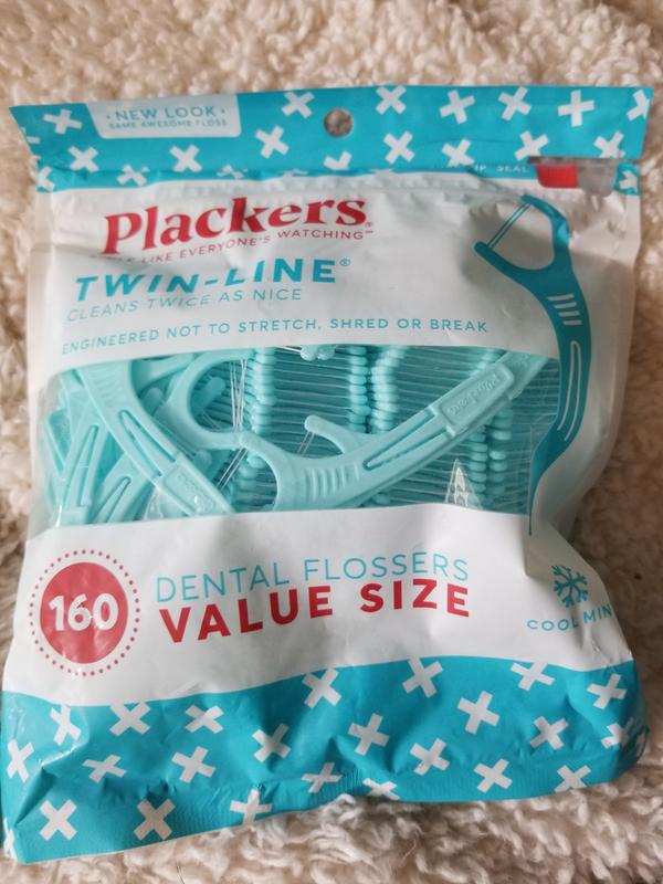 4 Plackers Twin Line Dental Flossers Cool Mint No Stretch Shred