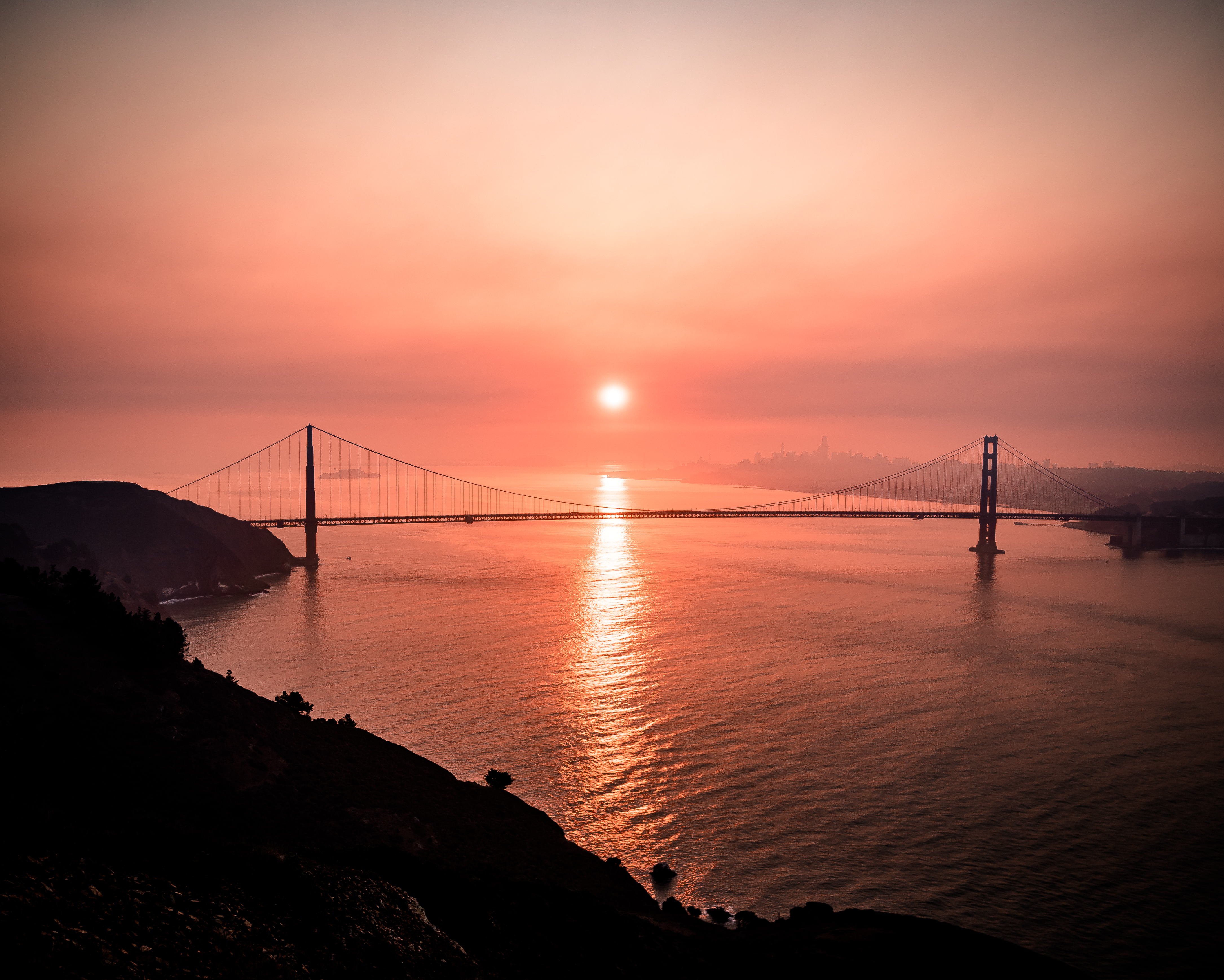 Golden Gate Bridge With Morning Fog Shot At Sunrise From Slackers