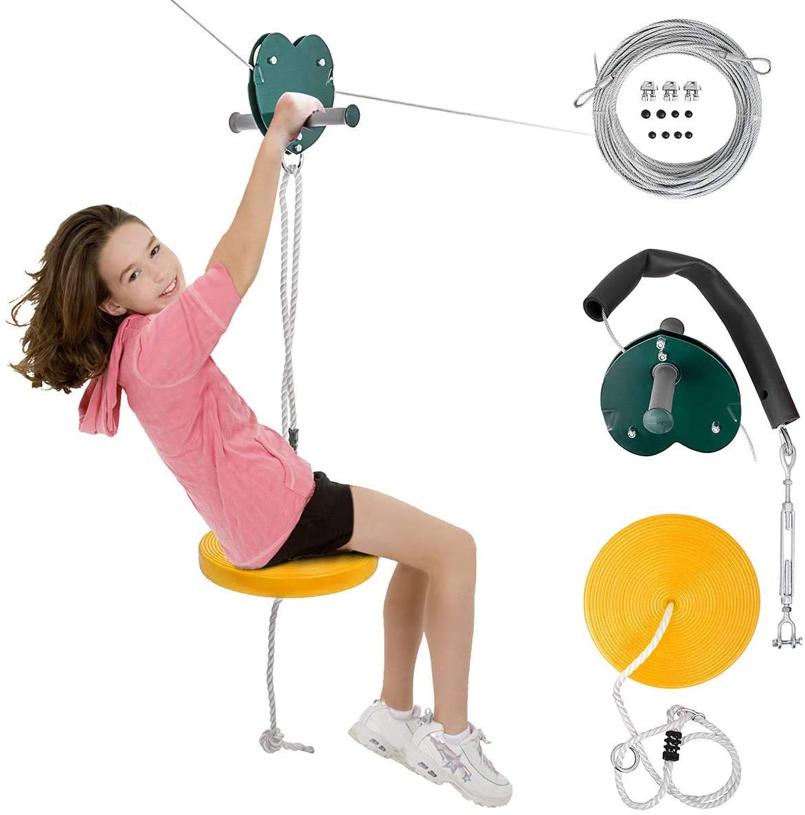 Yellow1 80ft Happybuy 80 100ft Zip Line Kit Kids Adult Zip Line